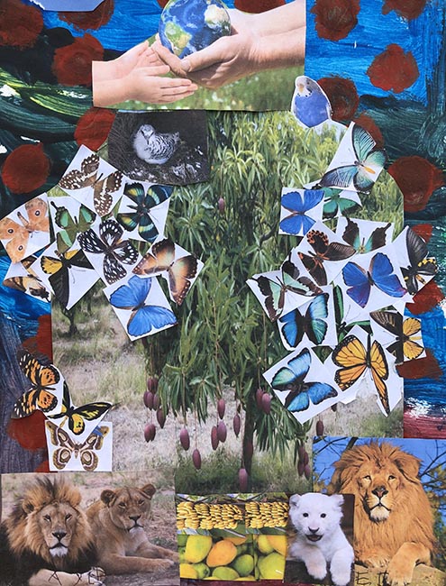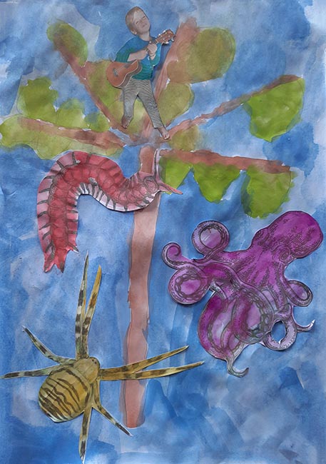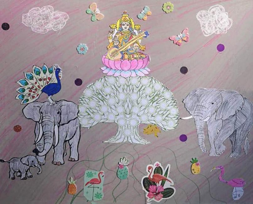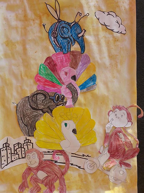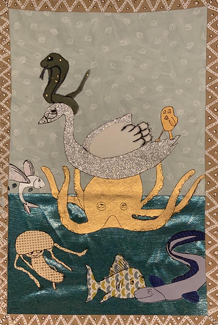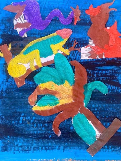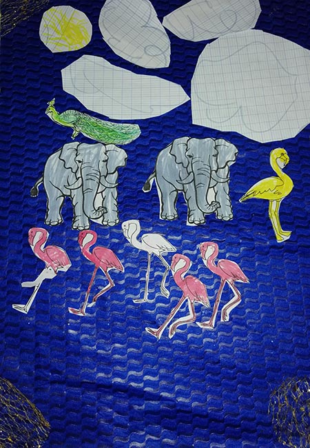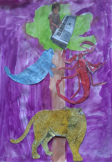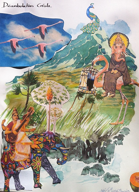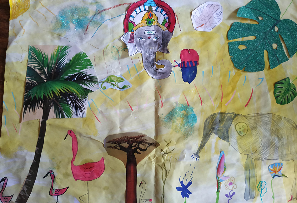 Ils et elles, élèves de primaire de la commune de Saint-Leu, nous proposent de découvrir leurs recherches et leurs créations, leurs écritures, autour de l’œuvre d’Avishek Sen, artiste indien. Achchhe din, créée en 2017 et acquise par le FRAC RÉUNION en 2018, est une aquarelle de grand format. Propice à la liberté et à l’imaginaire, cette œuvre a offert aux enfants l’opportunité de développer de nombreux univers quelquefois oniriques, quelquefois plus descriptifs, mais sûrement inspirés par la conjoncture confinée et l’écologie.